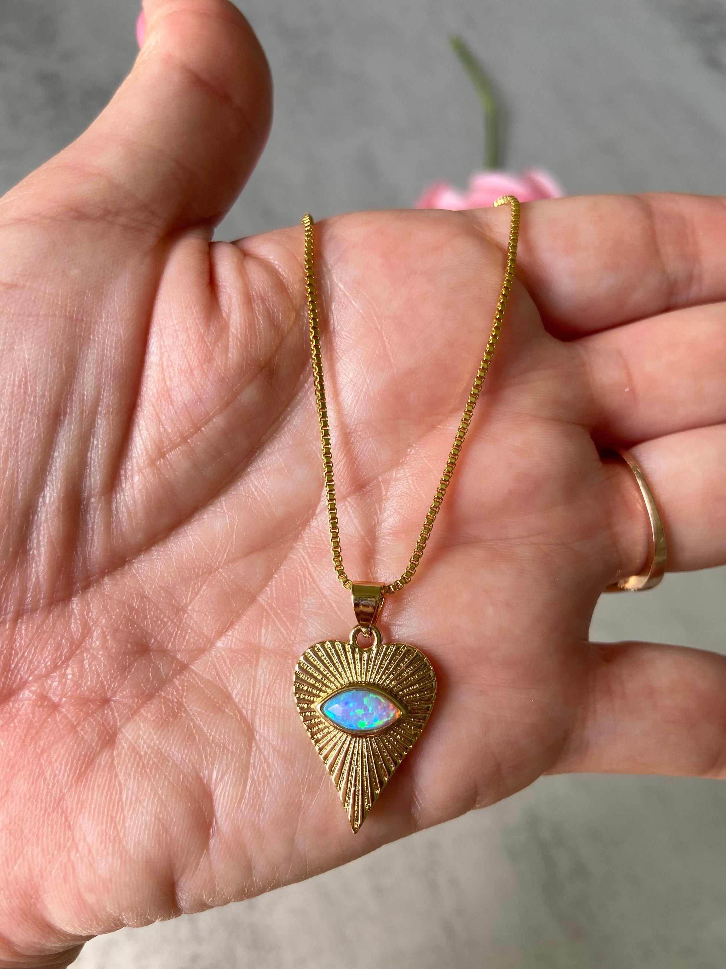 Opal Heart Protector Necklace